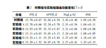 2. 2 對照組與實驗組凝血功能變化