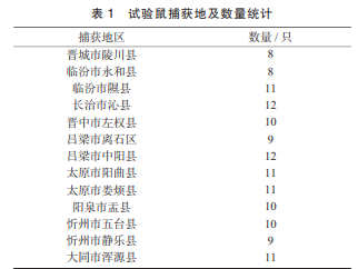 在野外捕獲活體長(zhǎng)尾倉(cāng)鼠后,取 其尾尖為 DNA 提取材料。捕獲地及數(shù)量見表 1。