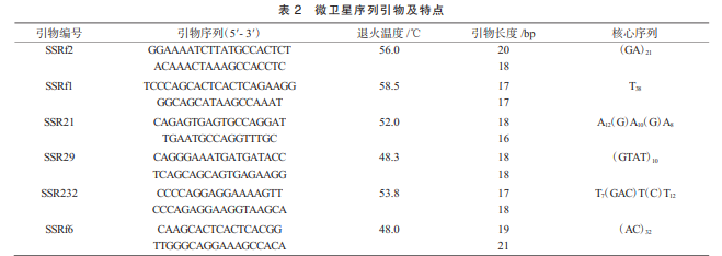 試驗(yàn)所采用的引物借鑒 了與長(zhǎng)尾倉(cāng)鼠同屬的黑線倉(cāng)鼠 SSR 位點(diǎn)引物, 并由生工生物工程股份有限公司合成。具體序列以 及特點(diǎn)列于表 2。
